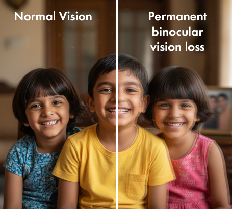 No. While the misalignment is visible, the more serious issue is the loss of Binocular Single Vision. When eyes don’t align, the brain may ignore signals from the misaligned eye, leading to Amblyopia (Lazy Eye) and a total loss of depth perception (3D vision).